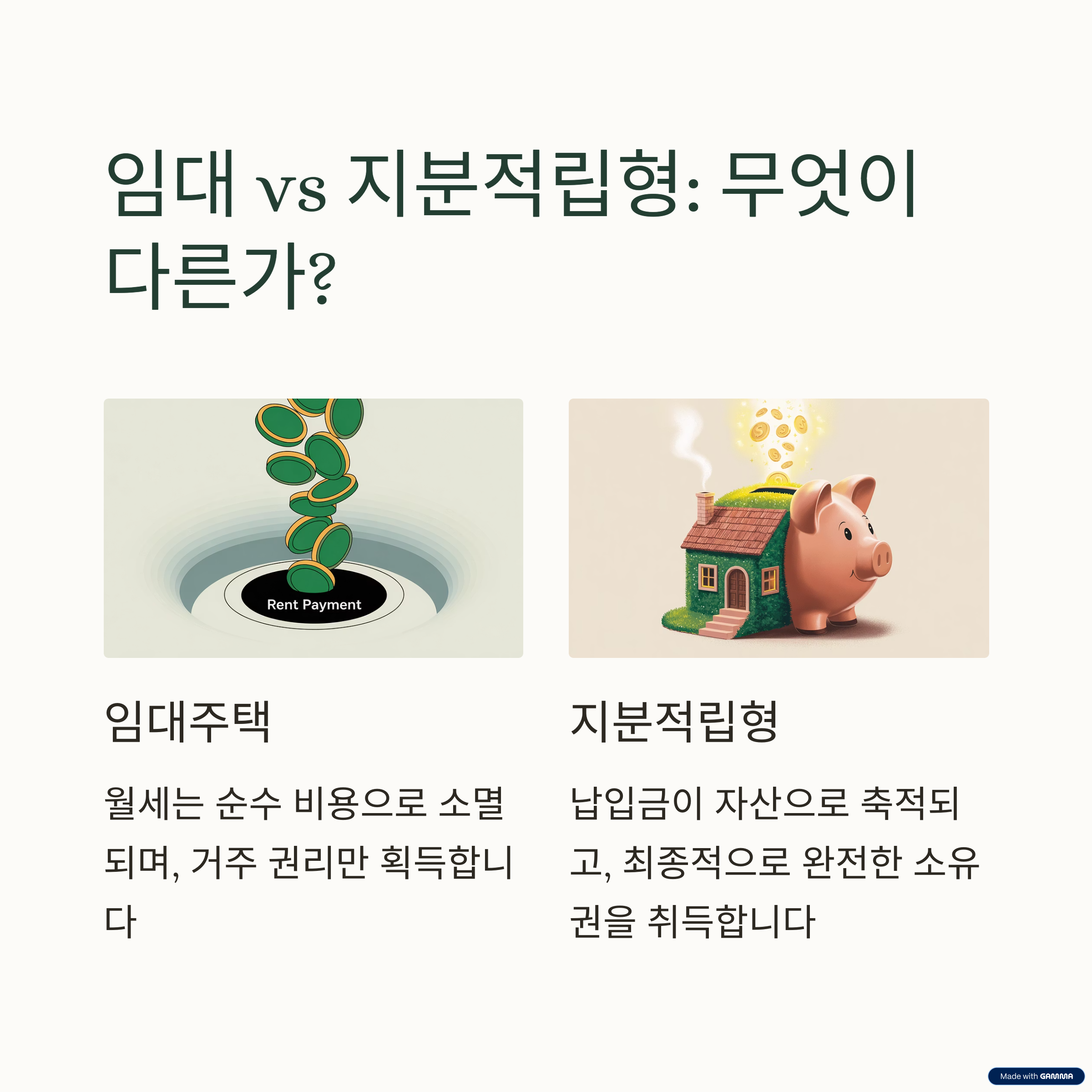 | 지분적립형이란? | 집값의 일부 지분을 분할 구매해 점진적으로 소유 |