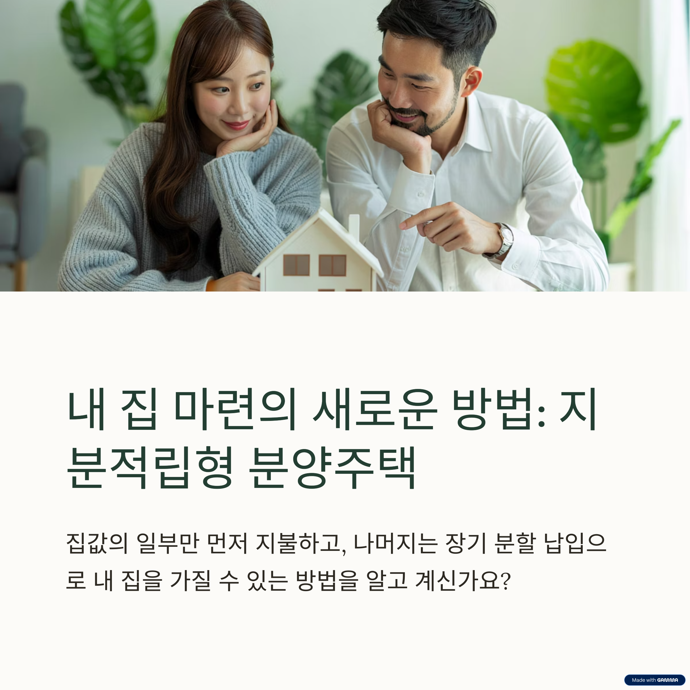 부동산 시장의 패러다임이 변하고 있습니다. 지분적립형 분양주택은 초기 비용 부담 없이 주택의 일부 지분부터 소유하고, 이후 장기적으로 전체 지분을 취득하는 방식입니다. 특히 내 집 마련이 어렵다고 느끼는 청년층과 무주택 서민에게 실질적인 자산 형성 수단으로 각광받고 있습니다. 기존의 고정된 분양 방식에서 벗어나 지속적인 지분 확보를 통해 주택 소유권을 확보할 수 있는 이 모델은, 부동산 시장의 새로운 대안으로 떠오르고 있습니다. 이번 포스팅에서는 지분적립형 분양주택의 구조, 장점, 그리고 활용 팁까지 구체적으로 알아보겠습니다.