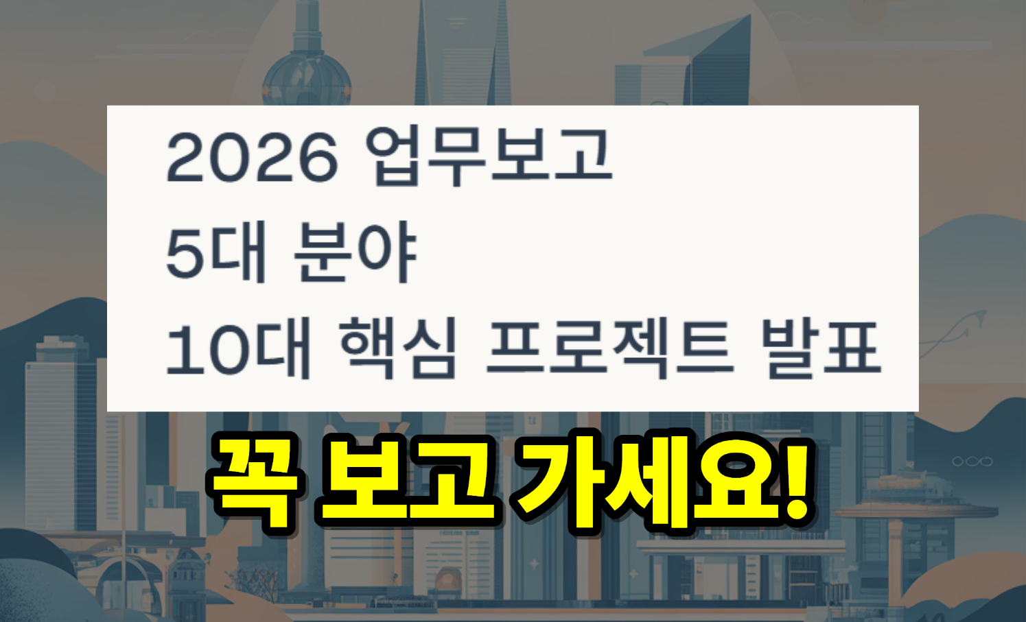 단순한 계획을 넘어, 우리의 삶을 실질적으로 바꾸는 10대 핵심 프로젝트들이 차질 없이 진행되어, 2026년에는 더 살기 좋은 대한민국이 되기를 기대해 봅니다.