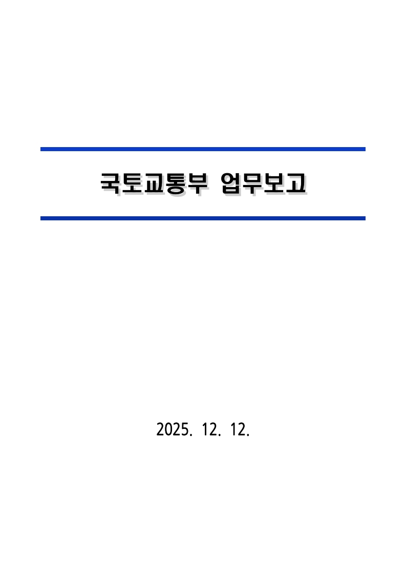 안녕하세요! 오늘은 대한민국 국토와 교통의 미래를 결정짓는 아주 중요한 문서를 소개해 드리려고 합니다. 바로 국토교통부의 업무보고 자료인데요.