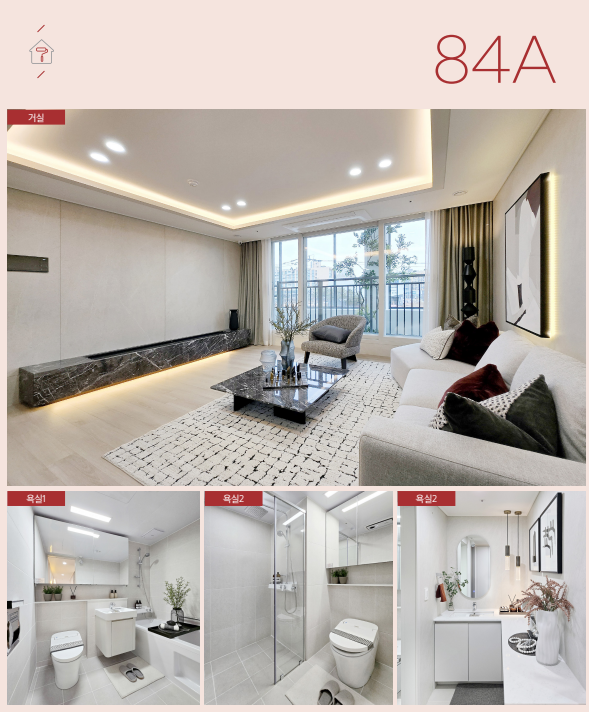 - 공간 활용 극대화: 4베이 위주의 판상형 구조와 더불어 대형 드레스룸, 팬트리, 알파룸 등을 배치해 공공분양의 한계를 뛰어넘는 수납 공간을 제공합니다.
