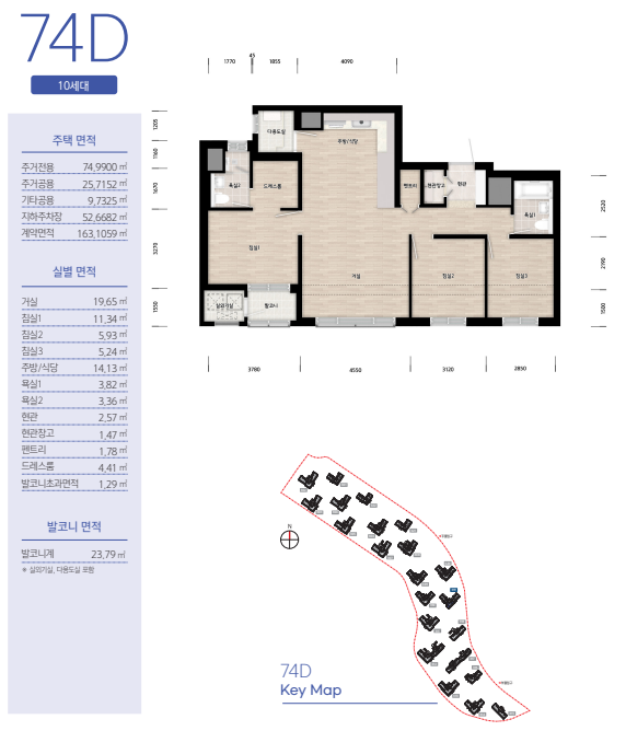 - 공급 규모: 총 643세대로 구성되며, 실수요자들의 선호도가 높은 전용면적 59㎡(54세대), 74㎡(302세대), 84㎡(287세대)로 나뉩니다.